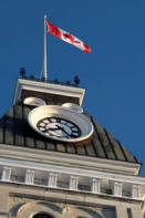 There was some committee negativism towards the design, but Matheson's recommendation prevailed, and it was approved on Dec. 15, 1964; two months later to the day, the new and official flag of our country. Finally, I ask John Matheson to clear up one of the flag myths -- that the red leaf on the white field create the images of two men quarrelling face to face, that their names are Jack and Jacques, and that it's deliberate. "No," says The Father of the Canadian Flag who would know. "Not at all." |